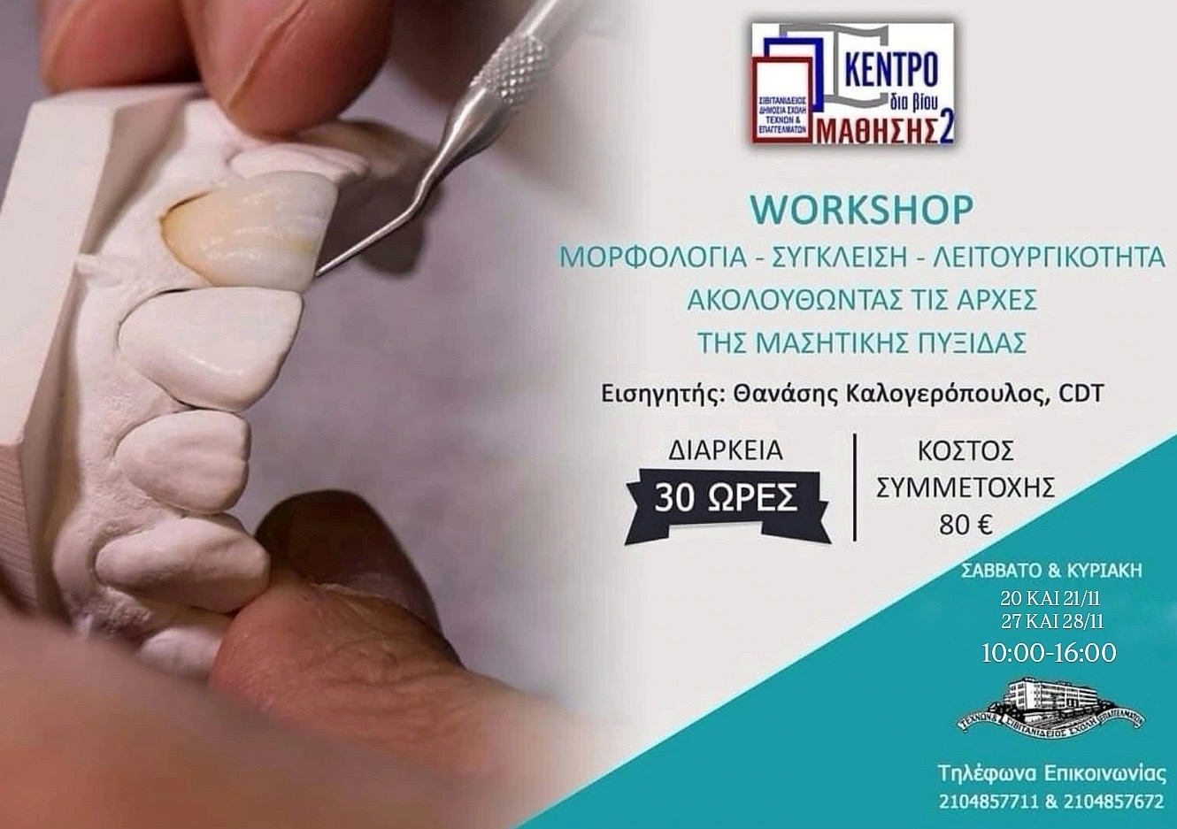 Νέος Κύκλος Workshop Μορφολογία Σύγκλειση Λειτουργικότητα - Ακολουθώντας τις αρχές της μασητικής πυξίδας, Διάρκεια 30 ώρες, Κόστος Συμμετοχής 80€.