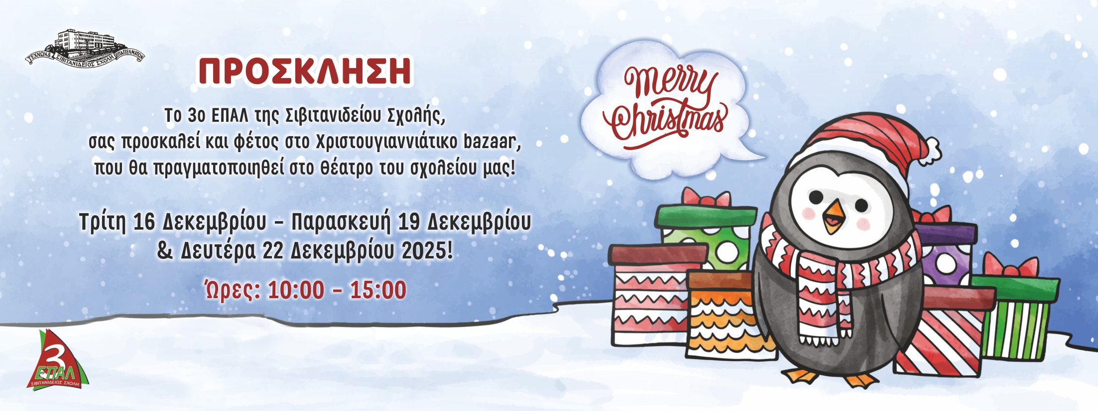Πάλι μαζί και φέτος στο πιο χαρούμενο Χριστουγεννιάτικο Παζάρι του 3 ου ΕΠΑΛ!